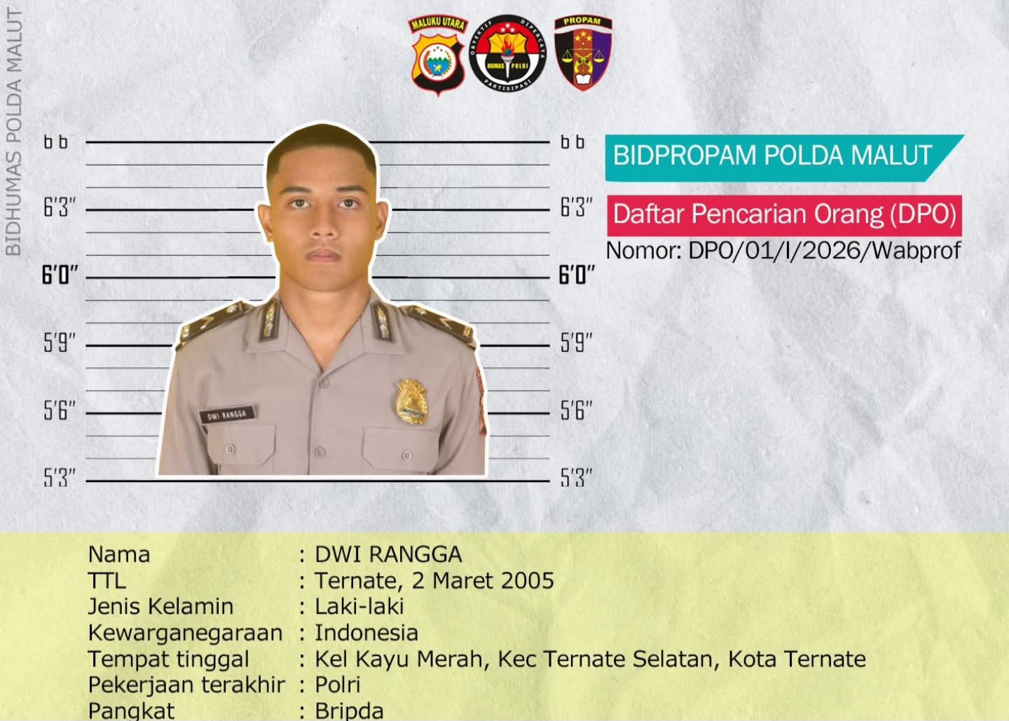 Personel Polda Maluku Utara jadi DPO Propam